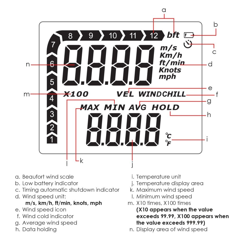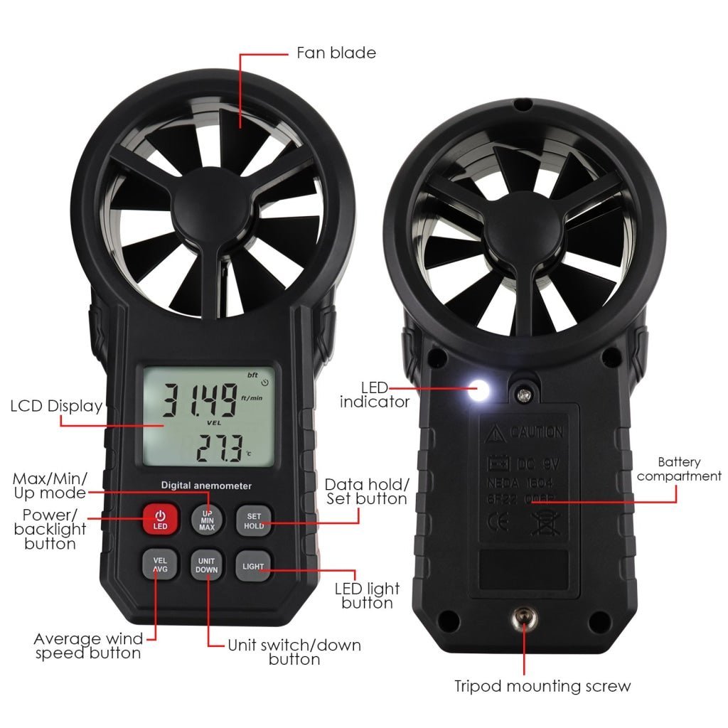 This vane anemometer is designed to measure wind speed and temperature. It's an ideal device for outdoor activities like Drone Flying, Windsurfing, Flying Kite, Aero modelling, UAV, Sailing, Surfing, Fishing, Hiking, Shooting, Walking, etc.